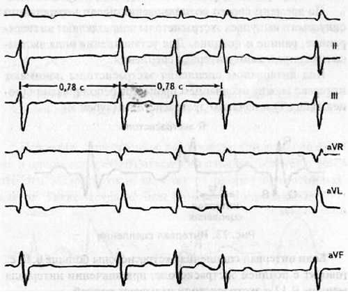 Непосредственно после экстрасистолического импульса в подавляющем большинстве случаев имеет место постэкстрасистолический интервал, или компенсаторная пауза. Если Сложить длину предэкстрасистолического и постэкстрасистолического интервалов, то при полной компенсаторной паузе указанная сумма интервалов будет равна длине двух нормальных синусовых интервалов R—R. В случае предсердной экстрасистолии компенсаторная пауза является неполной, т. е. сумма пред- и постэкстрасистолического интервалов меньше длины двух синусовых интервалов R—R.