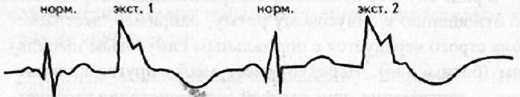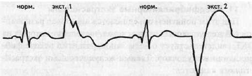 Следовательно, перед желудочковым экстрасистолическим комплексом будет регистрироваться экстрасистолический зубец Р, отличный от нормального зубца Р.