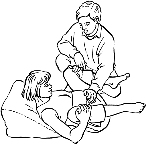 Рис. 136. Имитируя потуги, задача женщины – сопротивляться давлению руки партнера с помощью дыхания