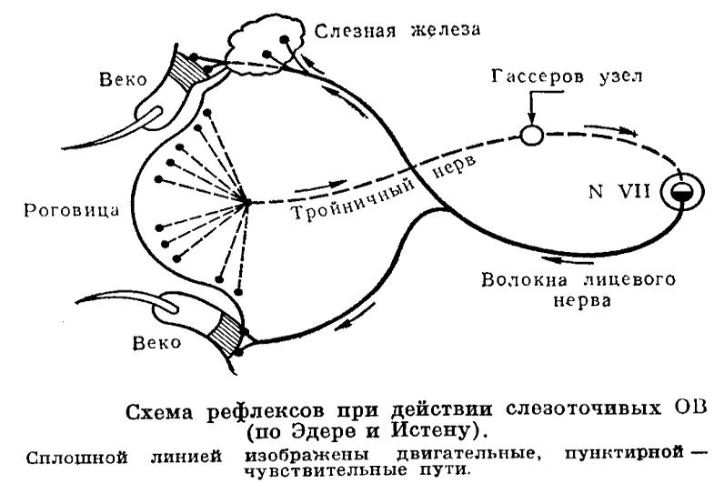 Рис.4 Схема рефлексов при действии слезоточивых ОВ