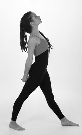 Адаптированный вариант Паршвоттанасаны. Поставьте ноги на расстоянии 90 см друг от друга. Разверните левую ногу на 90 градусов, а правую – на 30 градусов. Соедините руки за спиной: пальцы в замок, ладони кверху. Сделайте пол-оборота влево (90 градусов) так, чтобы пупок оказался на одной линии с левой ногой. Резко опустите руки вниз по направлению к полу, выпрямив локти и оттягивая плечи назад, вниз и по направлению друг к другу. Колени и позвоночник держите выпрямленными, голову осторожно поверните назад и сделайте вдох. Затем, делая выдох, перенесите торс вперед в сторону левой ноги и бедра. При этом изгиб должен быть только в бедрах. Вы должны чувствовать растягивание в левом подколенном сухожилии и задней части левой голени. Лопатки при наклоне вниз должны быть сведены вместе. Пальцы по-прежнему переплетены. Передвиньте руки еще ниже в направлении ягодиц. Оставайтесь в этой позе 15 секунд – на каждую сторону, медленно дыша через нос. Постепенно увеличивайте время удержания позы до одной минуты. При переносе тела на другую сторону вначале приведите торс в вертикальное положение, затем поверните его и ноги в первоначальную позицию, направленную вперед. После этого поверните правую ногу на 90 градусов, а левую – на 30 градусов. Туловище поверните так, чтобы пупок оказался на одной линии с правой ногой. Сделайте выдох. Затем проделайте то же самое на правую сторону.