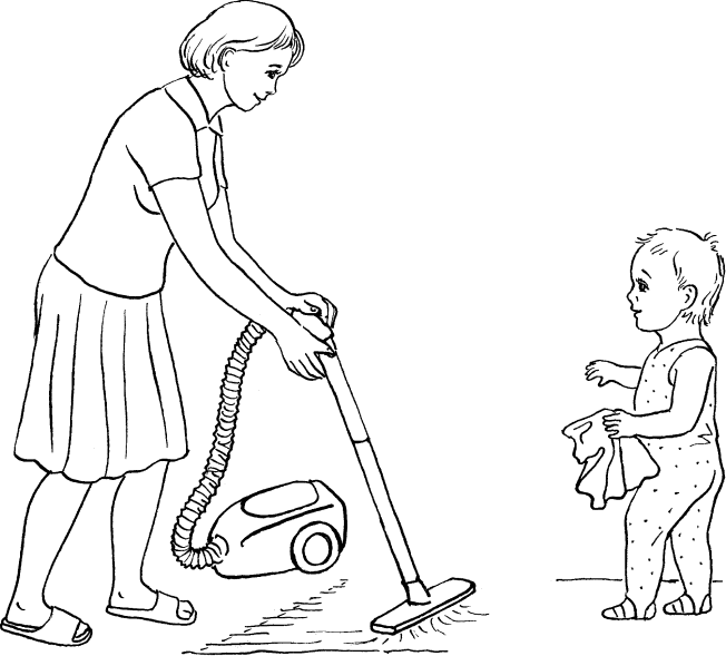 Ребенок продолжает активно подражать действиям взрослых, усложняя свои действия. У него даже появляется желание помочь маме в том, чтобы помыть пол, пропылесосить, постирать, сделать уборку в комнате. Конечно, все это выглядит забавно, но поощрять такие действия малыша, конечно, можно и нужно, хваля его.