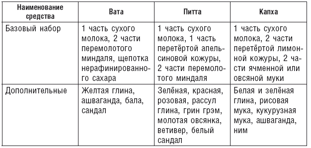 Хорошие таблицы ингредиентов по созданию индивидуальной линии по уходу за кожей даёт Ведический косметолог Анна Жижина, привожу их без изменений.