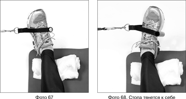 2. Закрепите один конец эспандера на неподвижном объекте, а другой – вокруг левой ступни. Эспандер должен тянуться по направлению от стопы (см. фото 67).