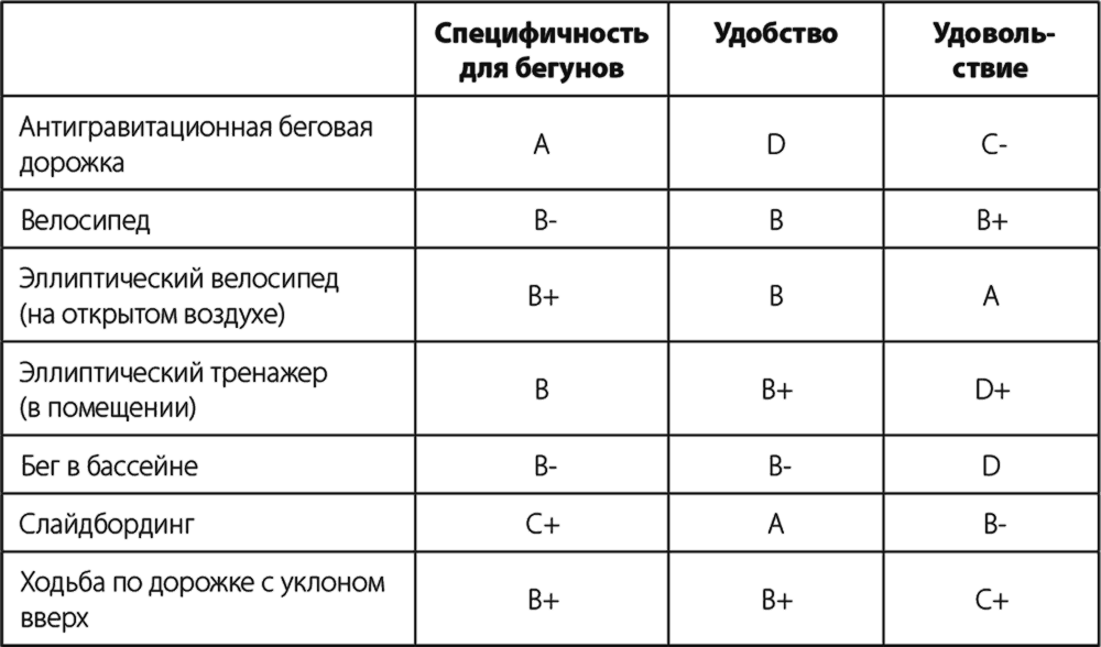 Таблица 8.2. Сравнительные характеристики семи лучших видов кросс-тренинга для бегунов