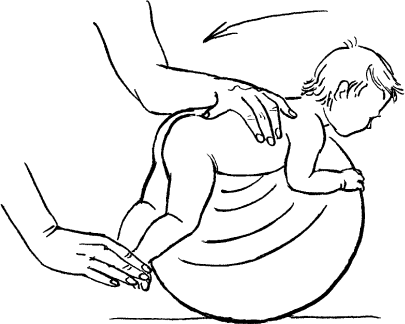 Вариант 1. В положении, когда ребенок лежит на животе, мама фиксирует его ножки, удерживая за голеностоп (рис. 362). И когда мама двигает малыша назад, его стопы должны полностью встать на пол. Сами движения и их последовательность остаются теми же.