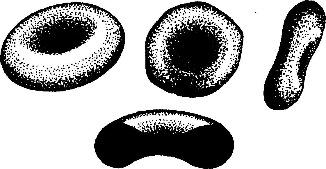 Эритроциты человека – это клетки толщиной 2 мкм, которые не имеют ядер. Они имеют дисковидную форму и вогнуты с двух сторон – двояковогнутые. Красная окраска эритроцита вызвана высоким содержанием белка гемоглобина. Этот белок необходим для переноса кислорода по телу человека. Молекулы кислорода присоединяются к атомам железа в гемоглобине, и эритроцит транспортирует их к нуждающимся в кислороде клеткам. У взрослого человека в норме содержится от 4,6 до 5,1 млн эритроцитов в одном микролитре крови, или около 44% от общего объема крови.