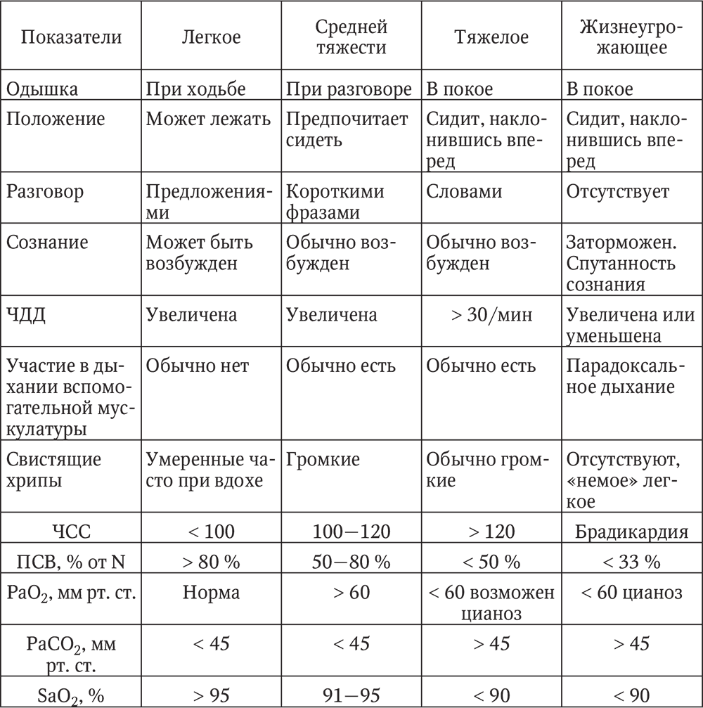 Оценка тяжести обострения БА