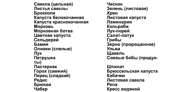 ПИЩЕВЫЕ ПРОДУКТЫ, НЕ СОДЕРЖАЩИЕ КРАХМАЛА (ОВОЩИ)[9]