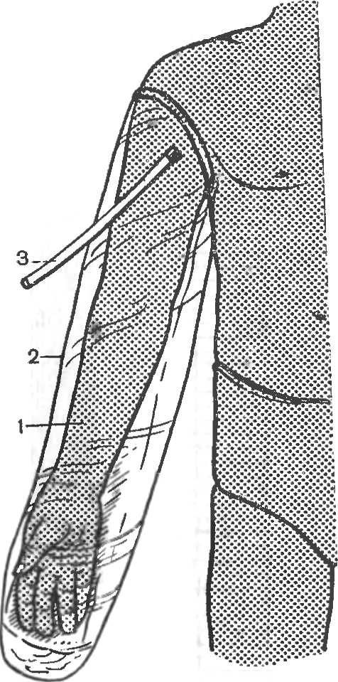 1 — внутренняя стенка шины; 2 — наружная стенка шины; 3 — ниппель, через который в шину нагнетается воздух.