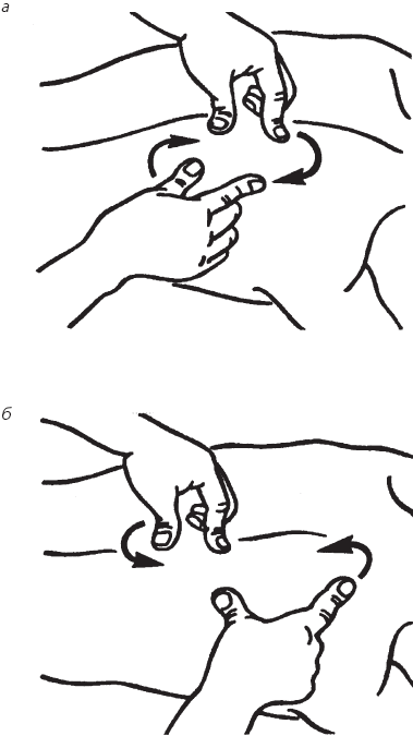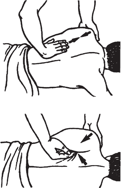 Левой кистью при наступлении расслабления в области лопаток воздействуют на ткани, расположенные под лопаткой, а также и под ее остью (рис. 60–1, 60–2).