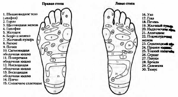Рис. 6-42. Зоны массажа для рефлексотерапии стоп