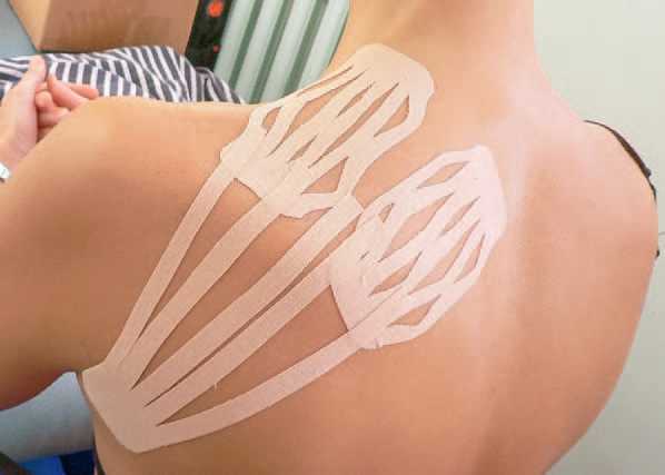 Через 15–20 минут после тейпирования болевой синдром в области плеча, надплечья резко уменьшился, в межлопаточной области – прекратился. Значительно увеличился двигательный объем в плечевом суставе. Со слов пациентки, к вечеру болевой синдром в области плеча, надплечья в покое прекратился, оставался при сильной физической нагрузке.