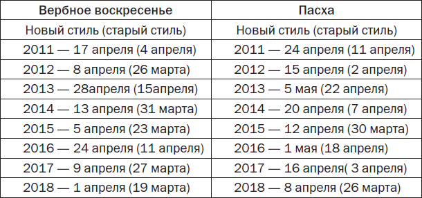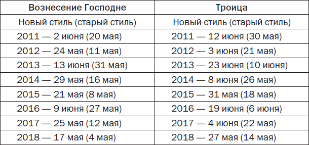 Святые и светлые праздники до 2018 года