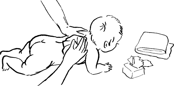 • Затем одной рукой поверните ребенка на бок и, придерживая ею, другой оботрите область спинки, ягодицы, не забыв высушить их полотенцем (рис. 143б).