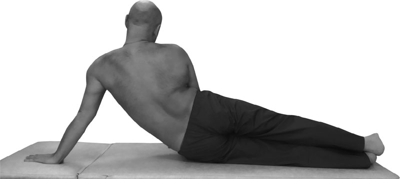 1. Лежа на боку приподняться на прямой руке до ощущения натяжения в области КМП, удерживать это положение в течение 15–30 секунд (см. рис. 43).