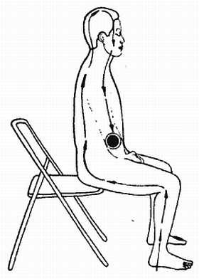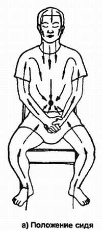 Закончив упражнения комплекса Железной Рубашки, сядьте и начните концентрацию энергии Ци, образовавшейся в результате упражнений. Сядьте на край стула, нащупав костями таза такое положение равновесия, которое позволяет вам поддерживать прямую осанку (рис 3-82а).