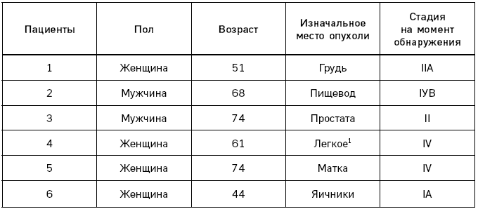 В итоге нам удалось собрать и опубликовать данные о десяти пациентах. Их онкологи взяли на вооружение наш метод и использовали его в терапии больных, у которых уже не было времени ждать результатов клинических испытаний. Мы изучили истории болезни семи женщин и трех мужчин в возрасте от 44 до 78 лет, больных различными типами рака на разных стадиях.