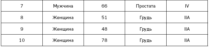 Таблица 2. Данные десяти пациентов, чьи истории болезни были проанализированы в ходе исследования взаимодействия голодания и химиотерапии