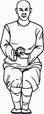 В позиции бинбу (ноги вместе) кисти рук сжаты в кулаки (центр кулаков направлен вверх) и находятся на поясе. Поднимите вверх выпрямленную в локте правую руку. Тыльная часть кулака развернута назад. Левую руку развернуть ладонью вверх. Опустите правую руку вниз и выполните удар тыльной частью кулака по ладони левой руки. В момент удара центр тяжести опустить вниз, ноги согнуть в коленях. Спина прямая. Точка приложения силы – тыльная часть кулака. При ударе делать выдох, напрягая низ живота.