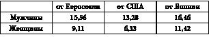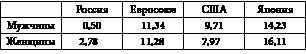 Отставание ОПЖ России от стран Евросоюза, от США и Японии на 2010 год (в годах)