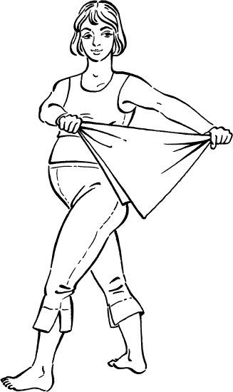Медленный поворот туловища улучшит тонус косых мышц живота и снимет напряжение с межпозвоночных дисков, которые «несут» на себе тяжесть подрастающего малыша.