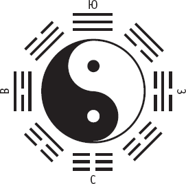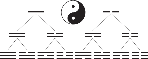 Дальнейшее деление четырех образов позволило создать так называемые триграммы, представляющие собой комбинации сплошной (Ян) и прерывистой (Инь) черт.