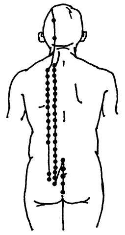 А если у него еще и сколиоз?! За осанкой родители сегодня следят мало. Если у человека искривлен позвоночник, то он по определению обречен на нездоровье, болезни. Все говорит о том, что энергетические процессы в организме идут неправильно. «Столб из золотых монет» держит спину, по нему проходит меридиан мочевого пузыря, канал-меридиан, на котором «включаются» и «переключаются» остальные меридианы. Можно образно сказать, что позвоночник – переключатель энергии. Практически все меридианы – желудка, поджелудочной железы, кишечника, почек – имеют переключение на главном меридиане – меридиане мочевого пузыря, проходящего вдоль всего позвоночника в два ряда.