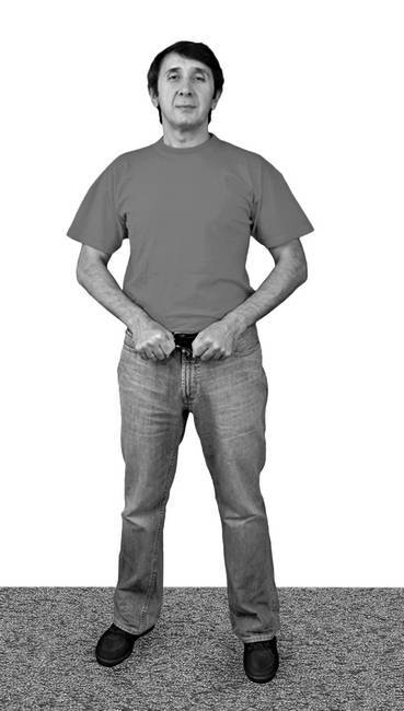На пассивном выдохе вернитесь в исходное положение: кисти рук снова на поясе, пальцы сжаты в кулаки – выдох ушел сам.