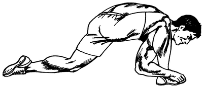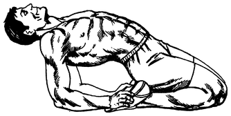 Из прежнего исходного положения опуститесь на колено задней ноги, одноименную стопу поставьте на ее подьем. Теперь наклонитесь вперед, стараясь завести плечо под колено передней ноги (рис. 35). Задержитесь на пару минут и смените ногу.