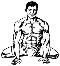 Встаньте на широко поставленные колени, оперевшись руками об пол перед собой. Соедините ступни вместе и постарайтесь, коснувшись тазом пола, полностью сесть на землю (рис. 41).