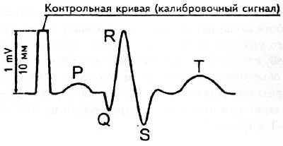 Для запоминания величины (высоты или глубины) основных зубцов необходимо знать: все аппараты, регистрирующие ЭКГ, настроены таким образом, что вычерчиваемая в начале записи контрольная кривая равна по высоте 10 мм, или 1 милливольту (mV).