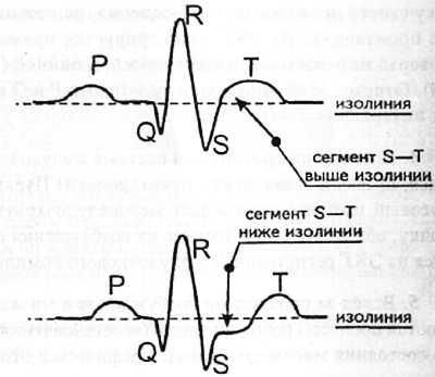 Сегментом в электрокардиографии принято считать отрезок кривой ЭКГ по отношению его к изоэлектрической линии. Например, сегмент S-Т находится выше изоэлектрической линии или сегмент S-Т располагается ниже изолинии.