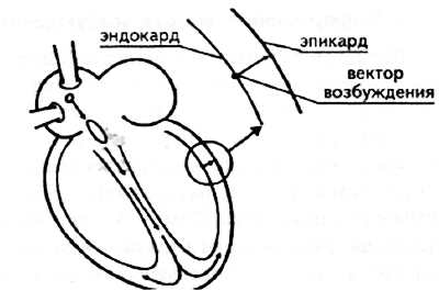 Рис. 14. Путь импульса от эндокарда к эпикарду