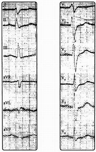Рис. 43. Реальная электрокардиограмма с признаками гипертрофии правого желудочка