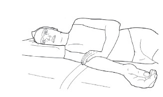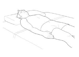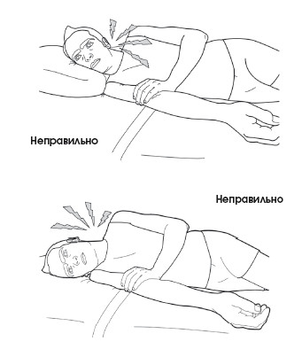 • При смене позы в положение лежа на боку рекомендуется взбить подушку, чтобы она соответствовала высоте головы, так как в этом положении расстояние между головой и постелью больше, чем в положении лицом вверх.