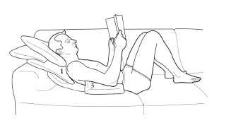 • Чтобы руки оставались расслабленными, когда держат книгу, под локти можно подложить подушечку (3).