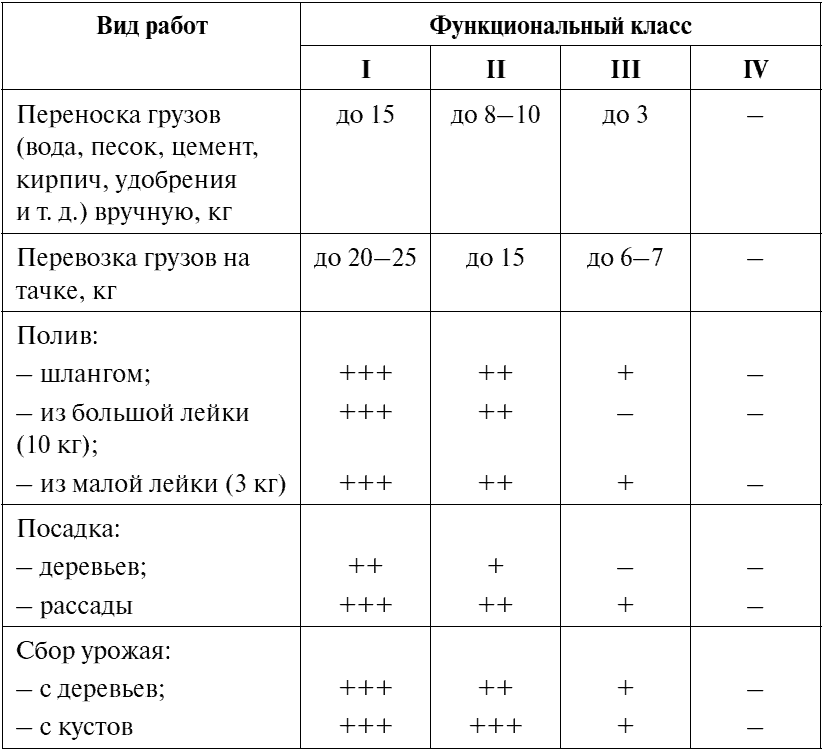 Допустимые виды работ на садовом участке для больных ИБС различных функциональных классов (по Д. М. Аронову)