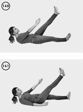 Исходное положение (ИП) – лежа на поверхности воды, лицо обращено вверх из воды или вниз, в воду. Тянитесь разнонаправленными рукой и ногой в противоположном направлении. То есть тянетесь левой рукой и правой ногой вдоль оси туловища. Удерживайте положение растяжения и напряжения мышц 5—20 секунд. Поменяйте вытягиваемые конечности на противоположные. Повторить 1–3 раза (ил. 140–141).