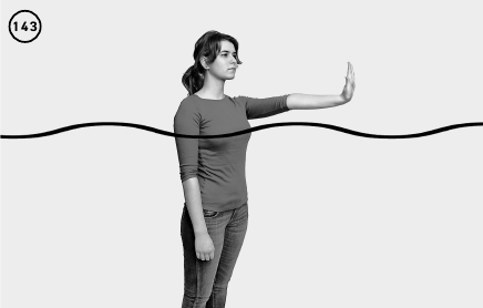 ИП – вертикально в воде. Одну руку выпрямить перед собой, ладонь повернуть от себя. Сохраняя ПОЛНОСТЬЮ ВЫПРЯМЛЕННЫМ локтевой сустав, тяните на себя выпрямленные пальцы руки. Второй рукой вы можете взять себя за пальцы и помогайте тянуть их к себе. Таким образом происходит разгибание локтевом и лучезапястном суставах и растяжение бицепса плеча и мышц предплечья. Удерживайте эту позицию 5—20 секунд. Повторите упражнение для противоположной руки (ил. 143).