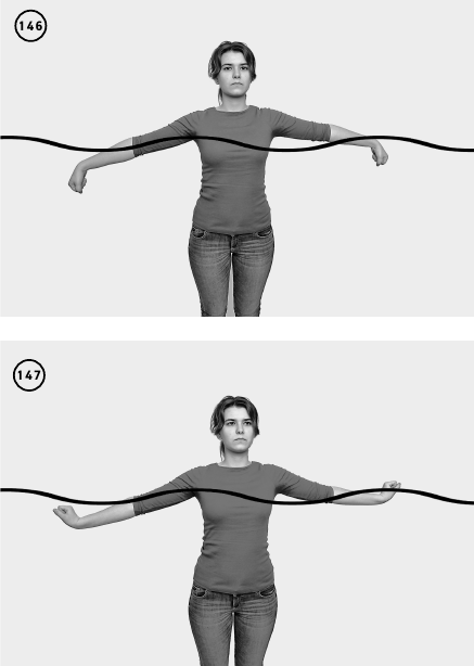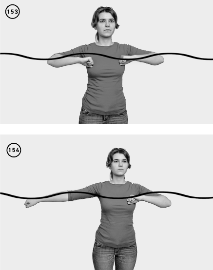 Выполняете упражнение аналогично предыдущему, но выпрямляете руки попеременно, двигая их в разных направлениях. Повторить 10–15 раз (ил. 151–152).