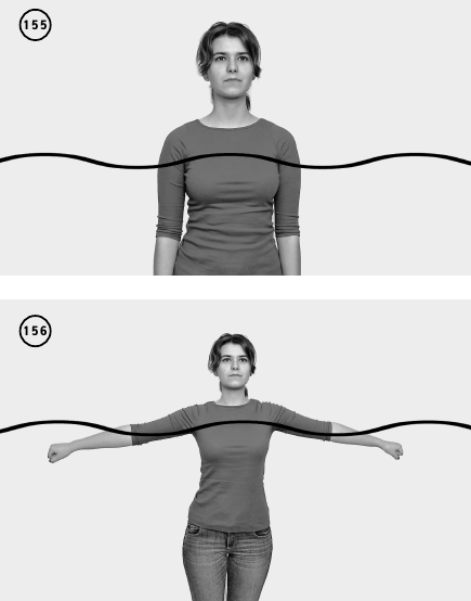 ИП – вертикально в воде. Руки вытянуты вниз, сжаты в кулак. С силой разводите руки в стороны до горизонтального положения, возвращайтесь в исходное положение. Повторить 10–15 раз (ил. 155–156).