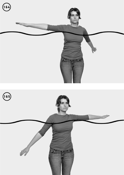 ИП вертикально в воде. Руки выпрямлены в стороны, ладони раскрыты, пальцы растопырены. Одновременно вращаете выпрямленными руками (ил. 163–165).