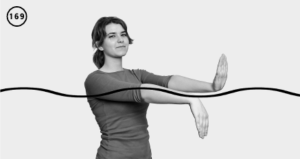 ИП – вертикально в воде. Руки согнуты в локтевых суставах. Ладони раскрыты, обращены вниз. С силой сгибаете и разгибаете руки в локтевых суставах, двигаясь в противоположных направлениях. Раскрытые ладони создают сопротивление, тренируя попеременно бицепс и трицепс каждой руки (ил. 166–168).