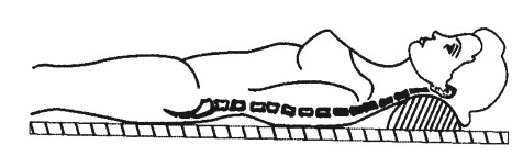 Кровать, на которой вы спите, должна быть настолько ровной и твердой, насколько это для вас терпимо. Одеяло должно быть таким легким, чтобы только не замерзнуть. На постели старайтесь лежать ровно. Когда тело лежит таким образом, вес его равномерно распределяется, мускулы максимально расслабляются, а подвывих или искривление позвоночника, вызванные вертикальным положением в течение дня, легко исправляются (рис. 1).