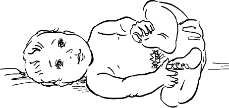 Дайте ребенку ухватиться за ваши пальцы и слегка подтяните его. Он тут же использует эту возможность, чтобы сесть и даже встать. Сейчас все чаще он пытается занять вертикальное положение. Его можно поддерживать в этом желании. Вы увидите, сколько радости доставляет малышу эта игра с вами, однако не стремитесь во что бы то ни стало усадить его на твердой поверхности, чтобы не создавать нагрузку на позвоночник.