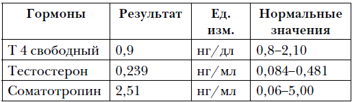 Сразу после выполнения упражнения она снова сдала кровь на уровень интересующих нас гормонов. Результаты оказались такими: