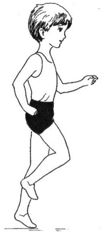 Ходьба шестилетних детей достаточно правильна: движения рук и ног согласованы, шаг уверенный с хорошим перекатом с пятки на носок, однако при фиксации внимания на отдельных элементах теряется координация движений, появляется скованность, неловкость. Это означает, что навык ходьбы еще недостаточно прочен.
