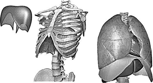 Обратите внимание, как утончается «ракета» нашего тела, становясь с высотой все более энергетически тонкой. Тело строится снизу, его фундамент (нижняя половина тела) наиболее материален по отношению к верхней половине. Вторая ступень нашей «ракеты» выступает зоной растяжки между первой и третьей, и потому более «легкая». Наши легкие действительно легкие. Если их положить на воду, легкие держатся на воде, когда как остальные органы тонут. Легкие и есть аналог рыбьего пузыря.