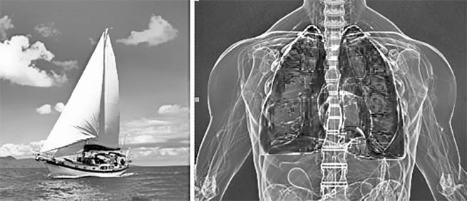 Легкие и грудобрюшная диафрагма – это горизонтальные и вертикальные паруса, без которых ракета нашего тела не смогла бы взлетать, обуславливая полет третьей ступени – головы и обеспечивая связь мозга и тела, правильную работу ЦНС.
